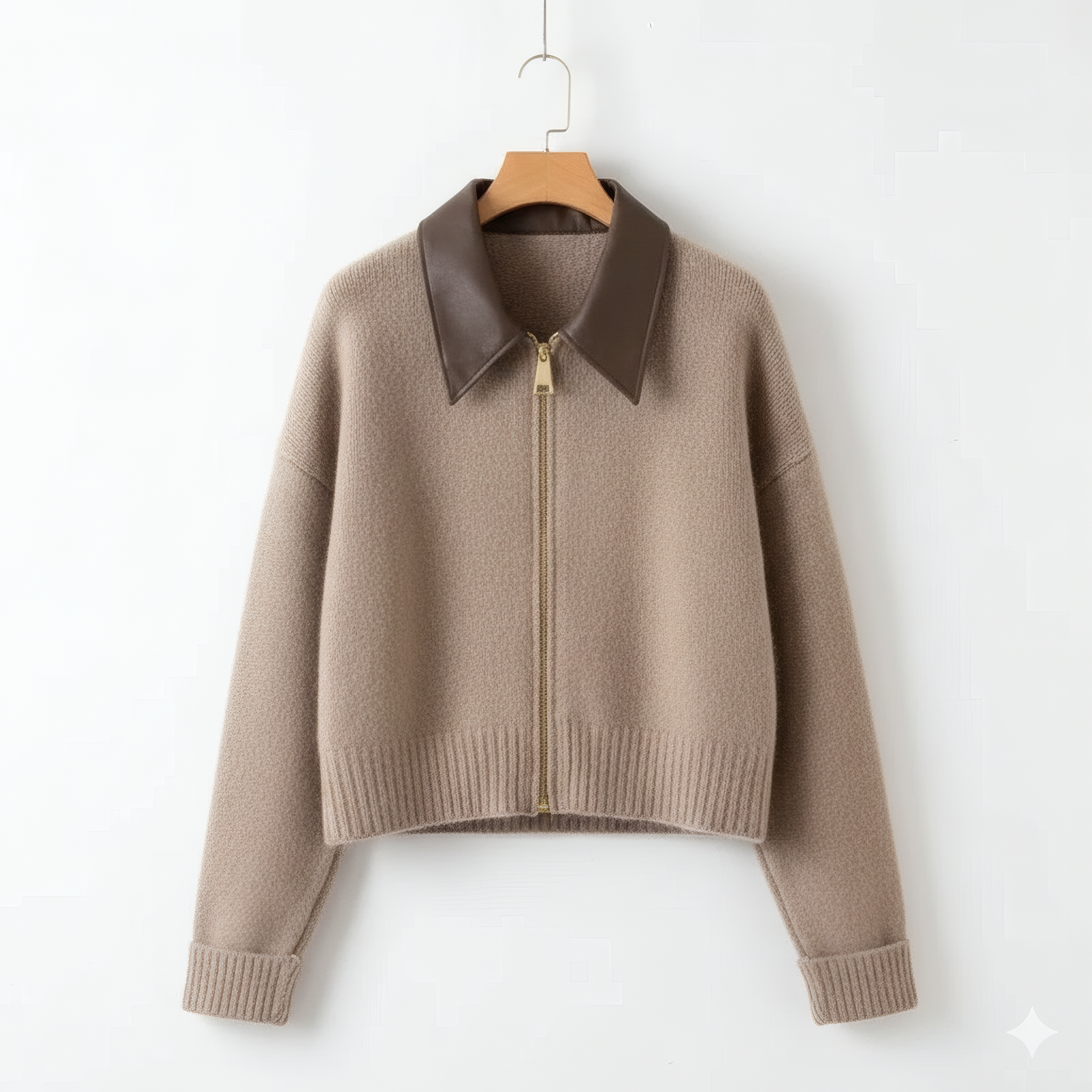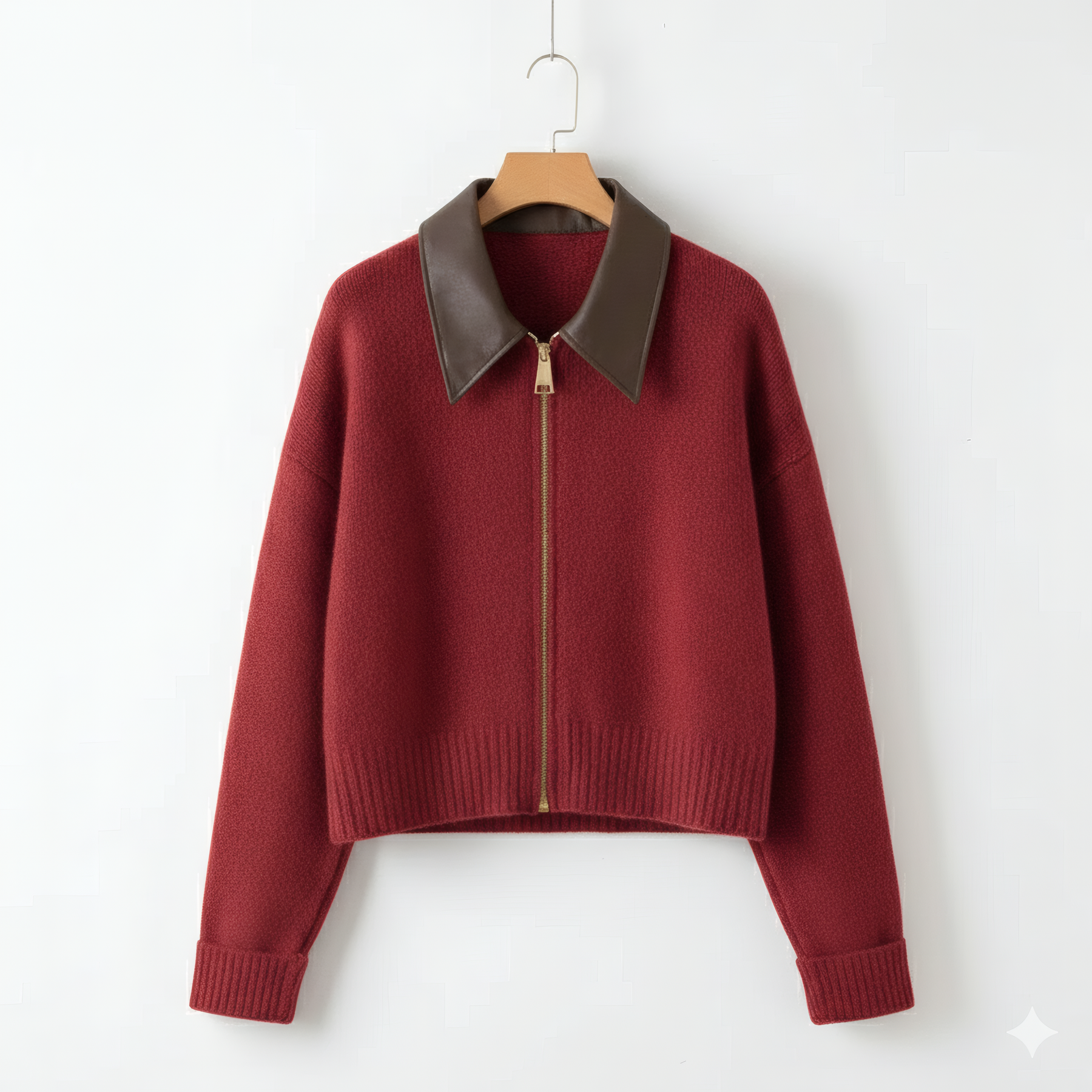Introducing the perfect blend of warmth, texture, and undeniable style. Our premium knit jacket is designed with a distinctive faux leather polo collar and a sturdy full-zip closure, making it a standout piece for any season.